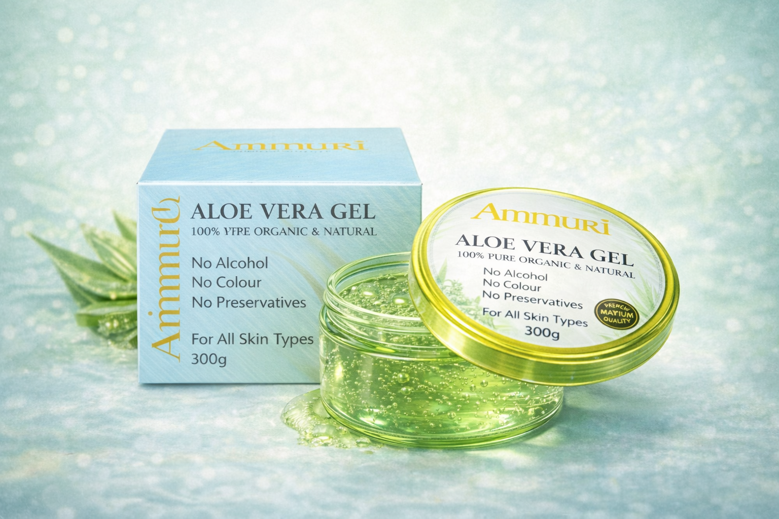 Ammuri Skincare Pure Organic Aloe Vera Gel for psoriasis enriched with vitamins for skin hydration and nourishment