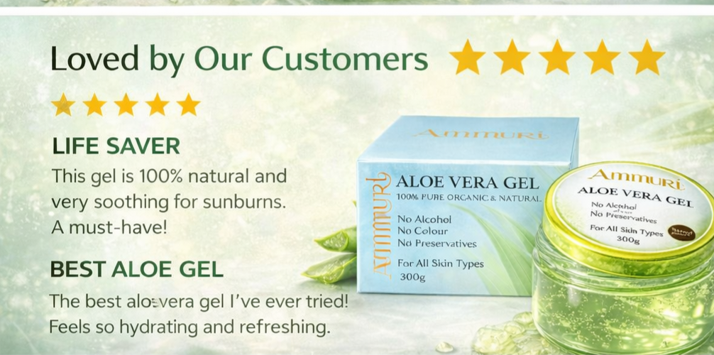 Discover the soothing power of Ammuri Pure Aloe Vera Gel, designed to deliver effective relief and hydration. This organic gel is your ideal companion in managing skin challenges. Our aloe vera gel for psoriasis is crafted to address irritation and dryness with its naturally soothing properties.