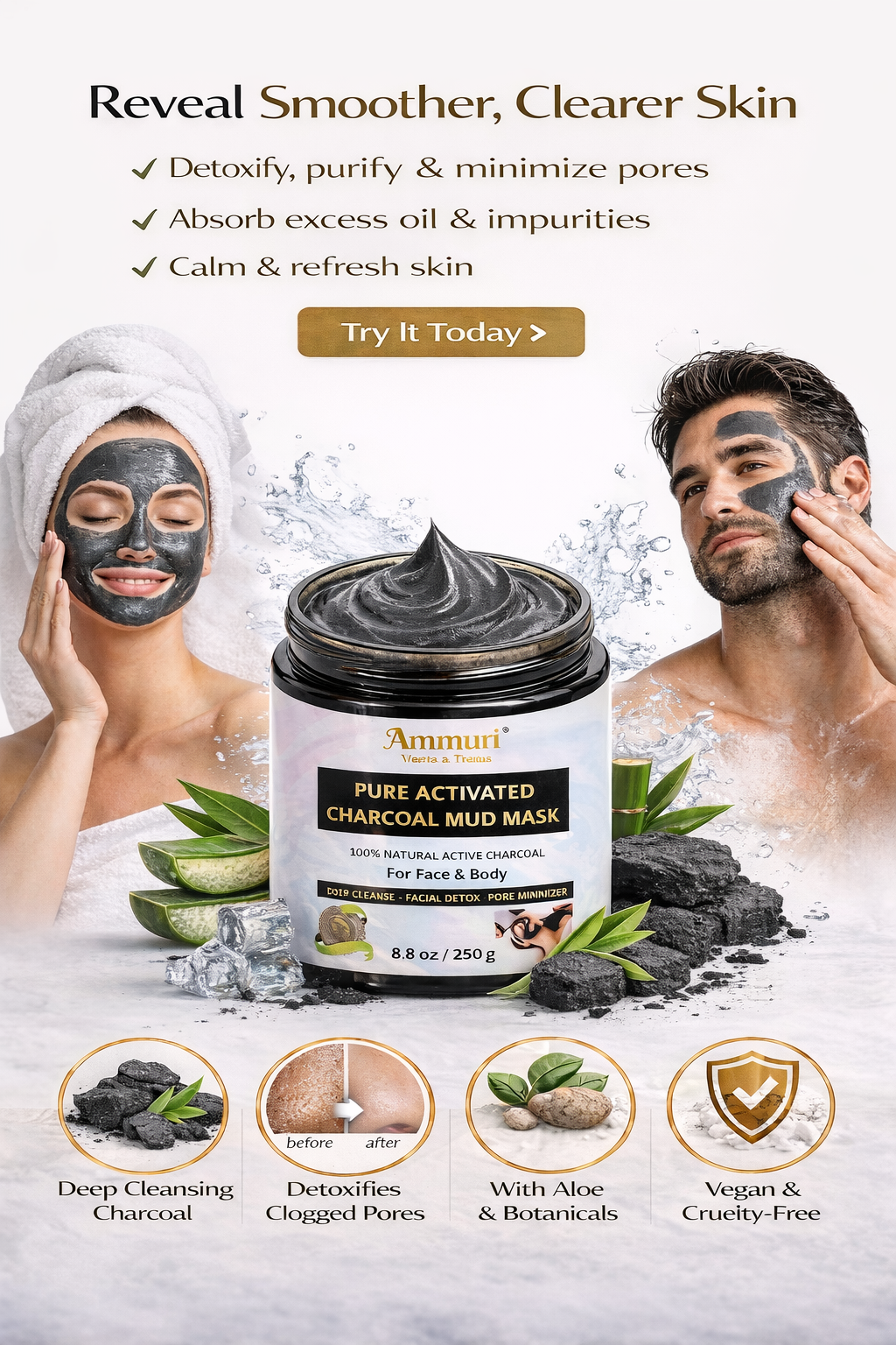 Experience the transformative effects of the Ammuri Pure Activated Charcoal Mud Mask. Designed for those seeking a charcoal mask for pigmentation, this powerful formula draws out impurities and toxins. With a blend of pure activated charcoal, this mask targets uneven skin tone, leaving your skin feeling rejuvenated and fresh.